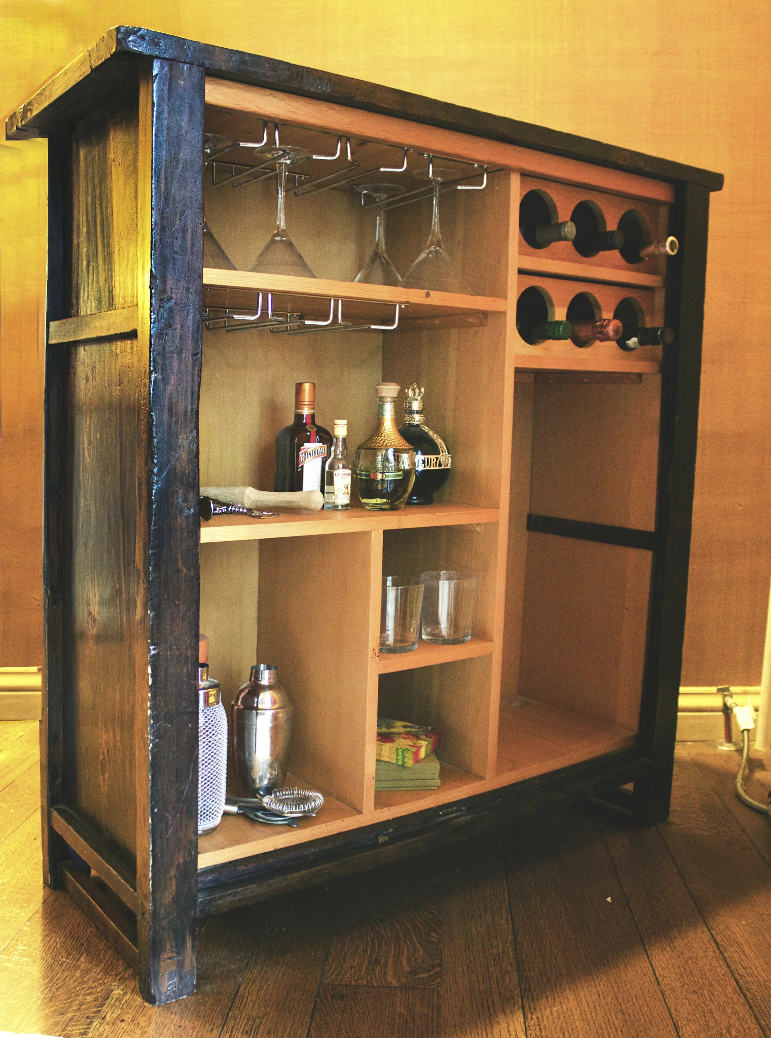 One of our clients had the need for an entertainment room with a wet bar. She fell in love with this antique asian cabinet that we had custom made into a cocktail bar!